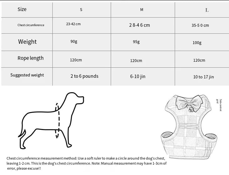 Crafted from high-quality cloth, it’s both lightweight and durable, ensuring your pet enjoys every outing. Available in a variety of stunning colors including red plaid and gray plaid, you can choose the perfect match for your pet’s personality. The harness comes in three different sizes: S (suitable for 3-8 kg), M (suitable for 8-14 kg), and L (suitable for 14-22 kg), ensuring a comfortable fit for pets of all shapes and sizes.