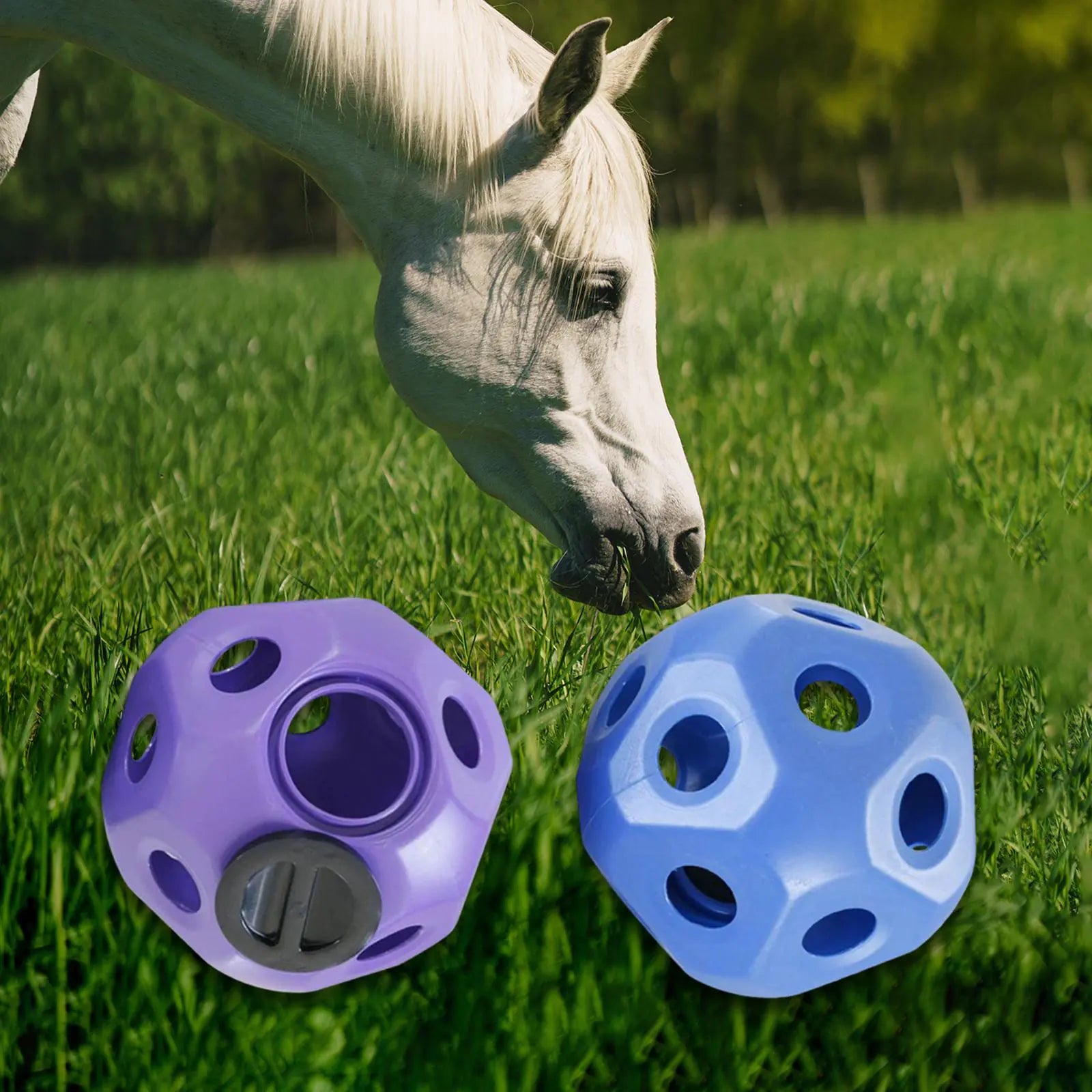 The Horse Hay Feeding Bag Toy Ball is not just a feeding tool; it’s a multifaceted toy that stimulates your horse's mind and prevents boredom during stable time. Available in two vibrant colors, Purple and Blue, this toy is sure to brighten up any stall!