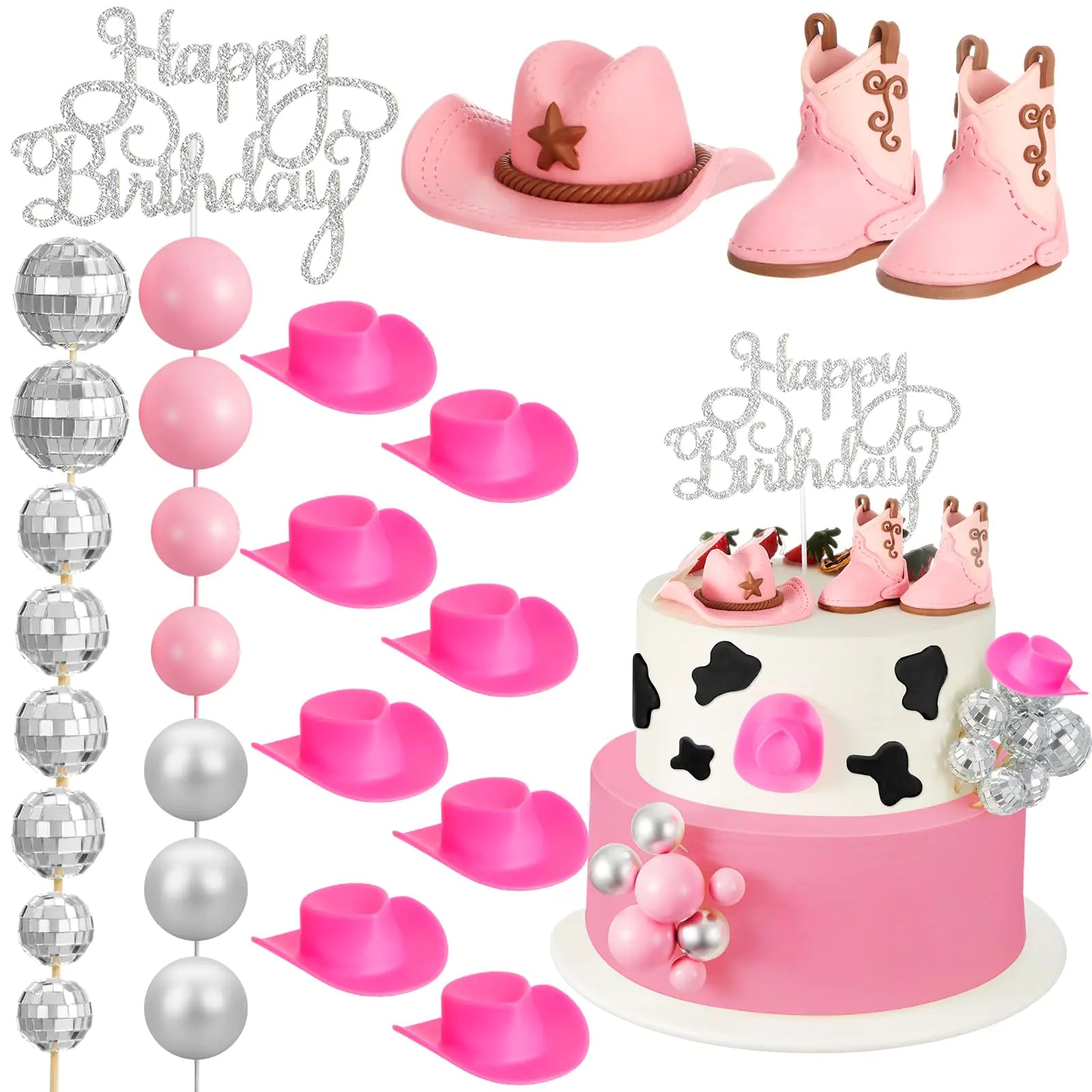 🌸 The set matches perfectly with your pink party theme, making your decor visually delightful with a cowgirl twist. It includes a variety of designs and sizes, promising to meet every aesthetic preference and make your party unforgettable.