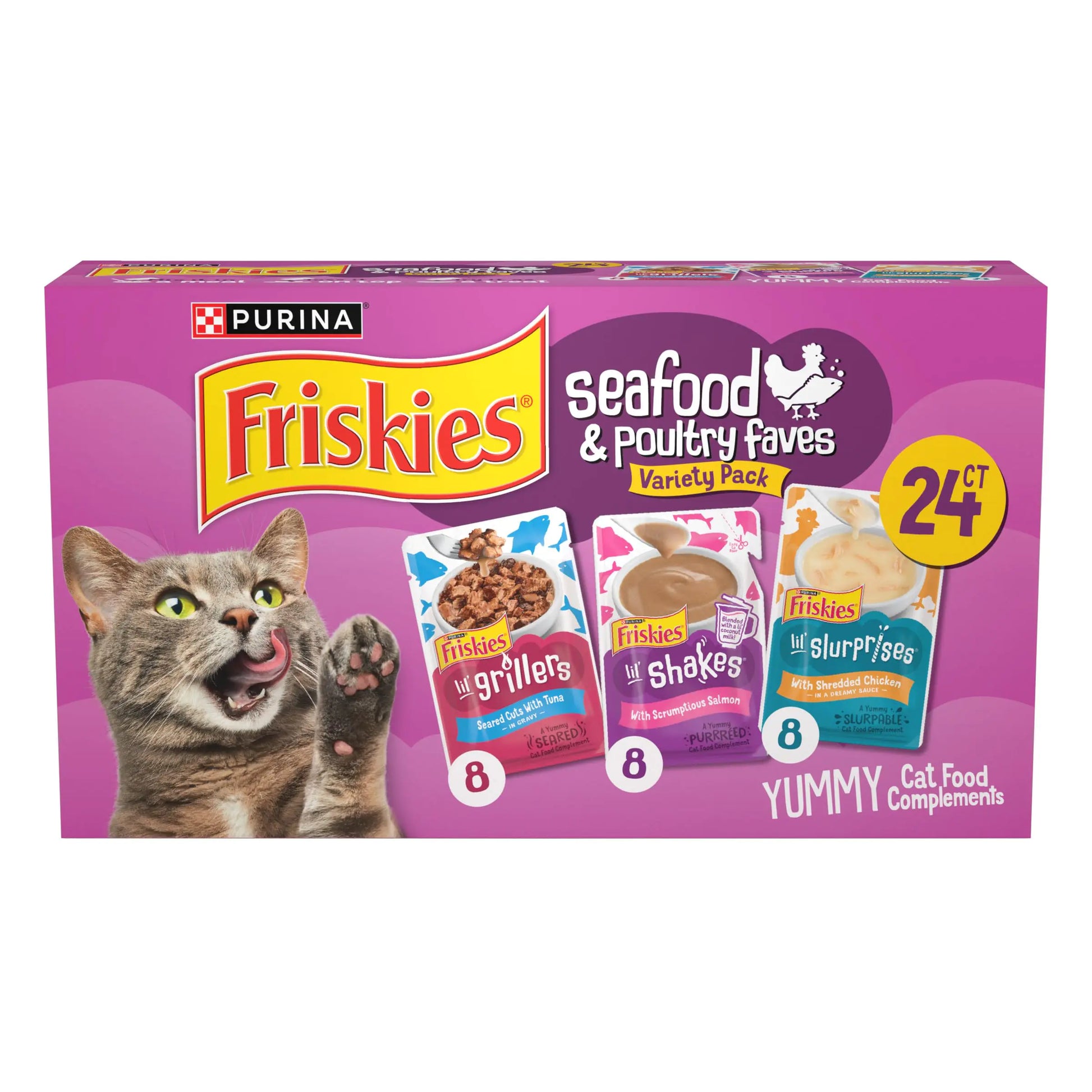 Purina Friskies Seafood and Poultry Faves Variety Pack Lickable Gravy Cat Food Topper - 24 ct. Box