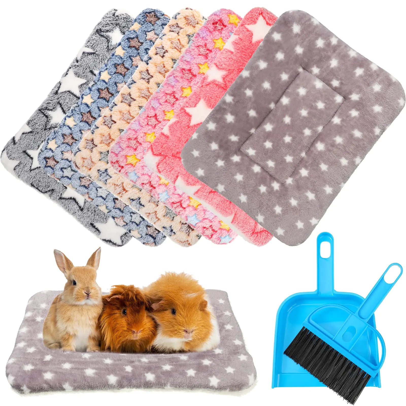 Yulejo 6 Pieces Guinea Pig Bed Plush Hamster Mat Bunny Bed Small Animal Sleeping Bedding Pads with Cleaning Dustpan Brush for Chinchilla Squirrel Hedgehog Small Animals (Cute Color Star)